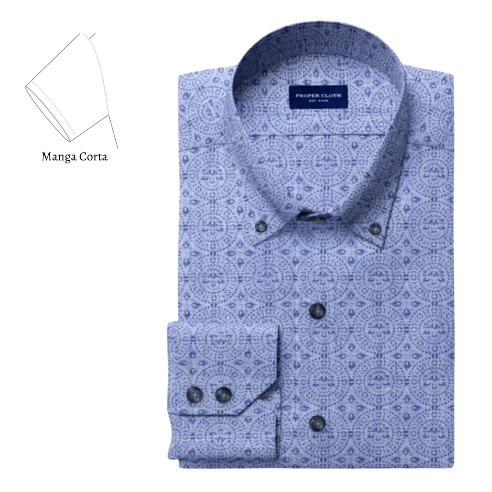 Trabajamos en estrecha colaboración con el legendario molino Albini para crear este hermoso estampado. En círculos de formas finas que se asemejan a plantas diminutas, está inspirado en estampados antiguos del archivo de telas de Albini en Italia. El azul real intenso del estampado parece fusionarse con la variedad de azules descoloridos del fondo de cambray, creando un efecto llamativo y fácil de usar. Nos encanta la frescura ligera de este cambray 50/1 x 30/1: es suave y aireado sin sentirse demasiado delicado. Llévalo por dentro de unos pantalones de lino o por fuera con tus vaqueros desgastados favoritos.