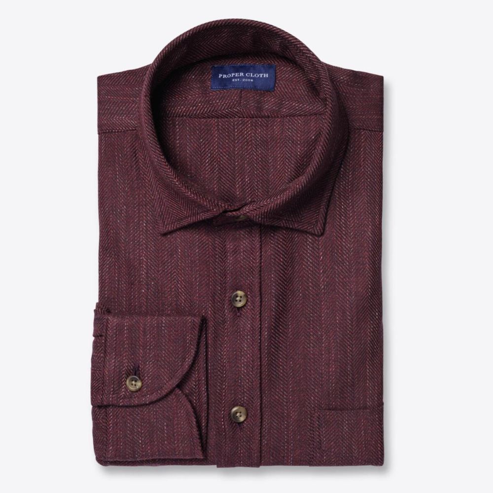 Este diseño de espiga está tejido con hilos blancos y diferentes tonos de rojo para añadir contraste y dimensión a la tela escarlata oscura. El tejido de una sola capa es más bien suelto, lo que crea comodidad y transpirabilidad durante las cuatro estaciones con la posibilidad de combinarlo con otras prendas fácilmente. La tela tiene un tacto suave y sutilmente texturizado que recuerda al lino. Este diseño de espiga, con sus tonos oscuros y líneas pronunciadas, es el tipo de tela que funciona bien en looks que van desde lo informal hasta lo más formal. Súbete las mangas y póntelo sobre una camiseta blanca, o abotónalo con un traje y corbata.