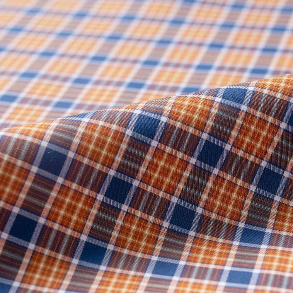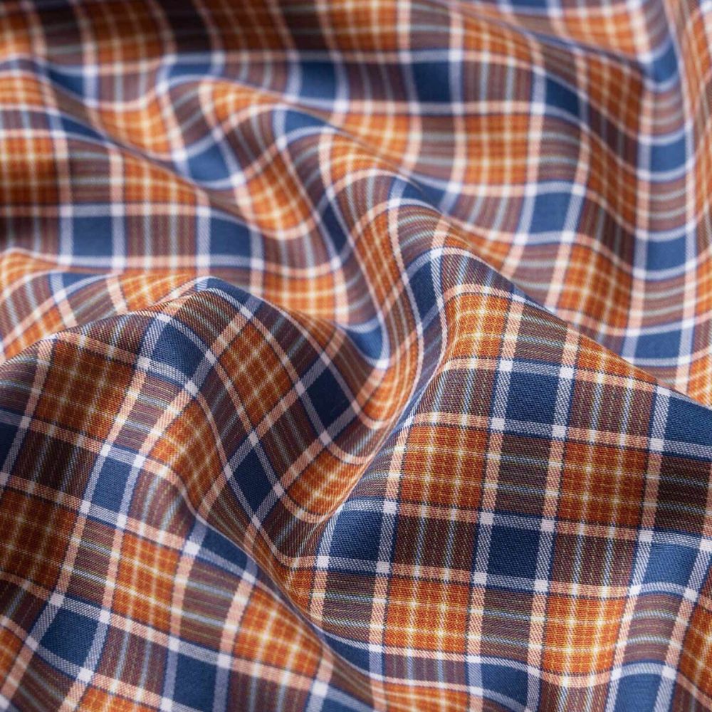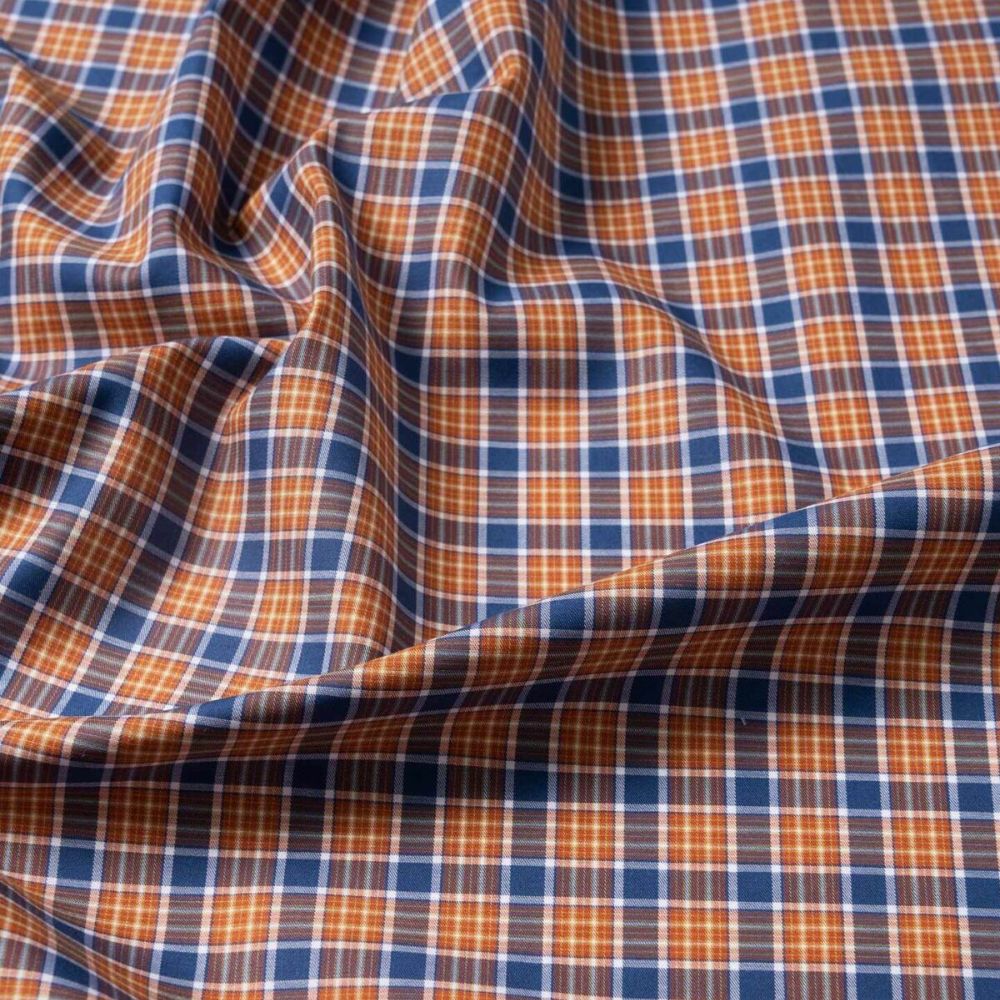 El acabado suave y los cuadros llamativos de esta sarga de una sola capa de los años 80 la convierten en una excelente opción para un estilo informal y de negocios más relajado. Las cuadrículas cruzadas en azul y blanco de naranja y amarillo crean un efecto de ventana que tiene un aspecto llamativo y divertido. Esta tela también se puede usar en cualquier época del año, ya que su construcción de una sola capa le da un poco más de transpirabilidad. Canclini ha estado fabricando algunas de las mejores telas del mundo en las afueras del lago Como, Italia, desde 1925, y esta no es una excepción. Llévala dentro de unos chinos o arremángate y úsala con jeans. Pruébala con un traje azul marino si te sientes audaz.