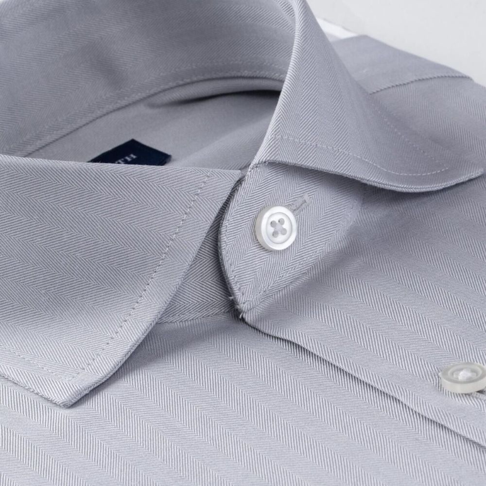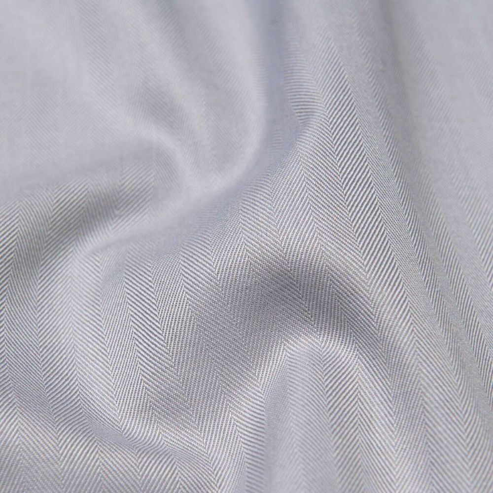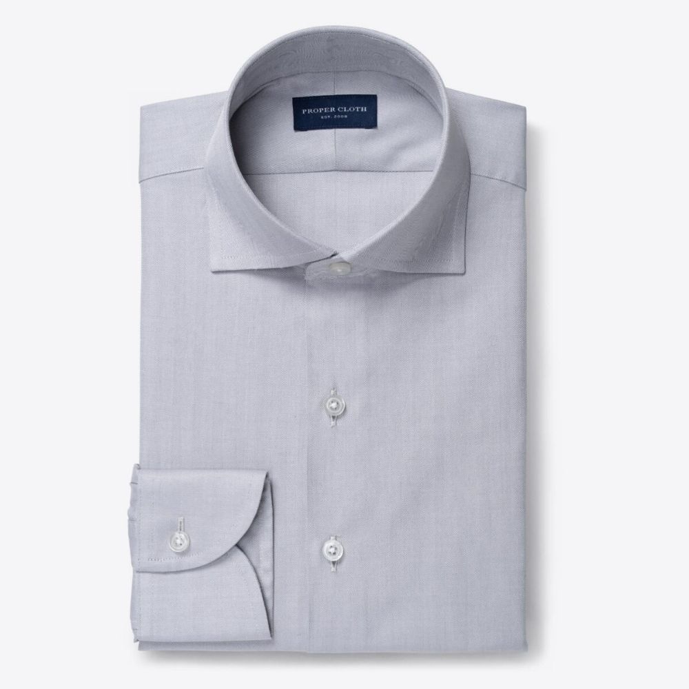 Esta discreta espiga tiene la cantidad justa de interés visual para elevar cualquier aspecto formal o de negocios, y es una excelente alternativa a otras telas texturizadas como la sarga imperial y el oxford real. Está hecho con una construcción de sarga de 2 capas de los años 90 que le da el equilibrio perfecto de durabilidad, suavidad y caída suave. La sutileza del tejido en espiga le da a este gris claro un brillo que no se siente demasiado atrevido, por lo que puede encajar fácilmente en looks de traje y corbata y pantalones y mocasines.