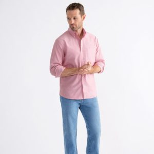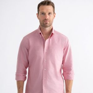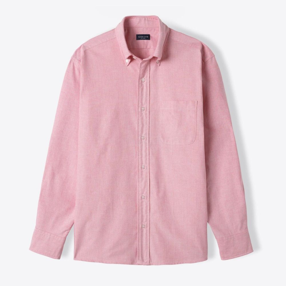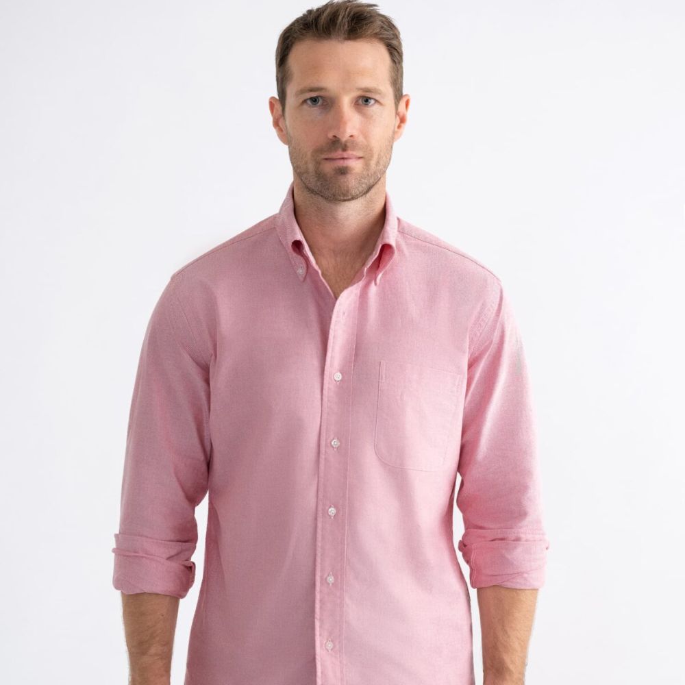Nuestros pesados zapatos Oxford tienen el peso justo: están tejidos con algodón Pima con una construcción de 40/1 x 21/2 para una tela que se siente sustancial, pero no demasiado gruesa. También son muy resistentes, lo que significa que durarán años y mejorarán a medida que se laven y usen más. Puedes vestir un Oxford debajo de una chaqueta deportiva o vestirlo de manera informal con tu par de jeans favoritos. Es una de las pocas telas que se puede usar con la misma facilidad con una corbata que arrugada y por fuera. Este Oxford pesado rojo tiene el tono perfecto de rojo polvoriento que es fácil de usar y rompe muy bien con la rotación de camisas blancas y azules.
