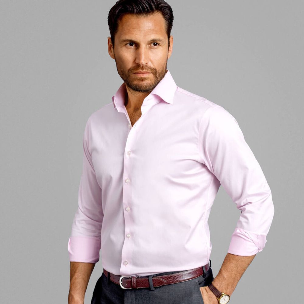 Para aquellos que ya tienen un establo de camisas blancas y azules, este es un excelente próximo paso para un color sólido que se siente profesional. Tejido con una construcción de 2 capas 100s, tiene una sensación de mano suave pero sustancial. El hilo retorcido le da mayor durabilidad, mientras que el tejido de sarga de peso medio agrega un poco de brillo para una apariencia más elegante. Para aquellos que prefieren una tela mate y sin brillo, pruebe nuestro Pink Bowery Pinpoint (PCF583). El Hudson Pink Twill tiene un tratamiento ligero resistente a las arrugas para que luzca impecable durante todo el día. Este tratamiento no es tan fuerte como las camisas "Non-Iron" a las que muchos están acostumbrados, pero encontramos que logra un excelente equilibrio entre el rendimiento, la transpirabilidad y la sensación de la mano. Requerirá planchado, pero una vez planchado se ve increíble.