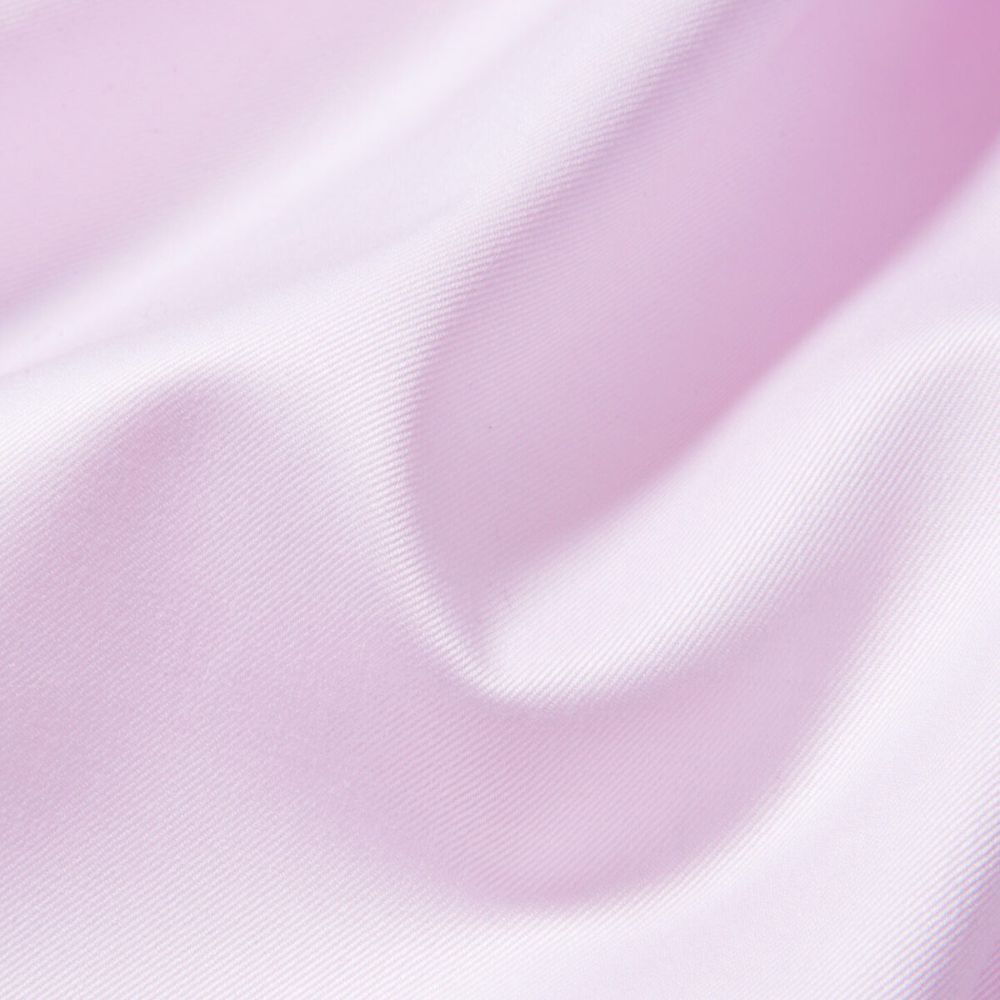Una lujosa sarga fina en un suave tono rosa que funciona bien para la oficina.