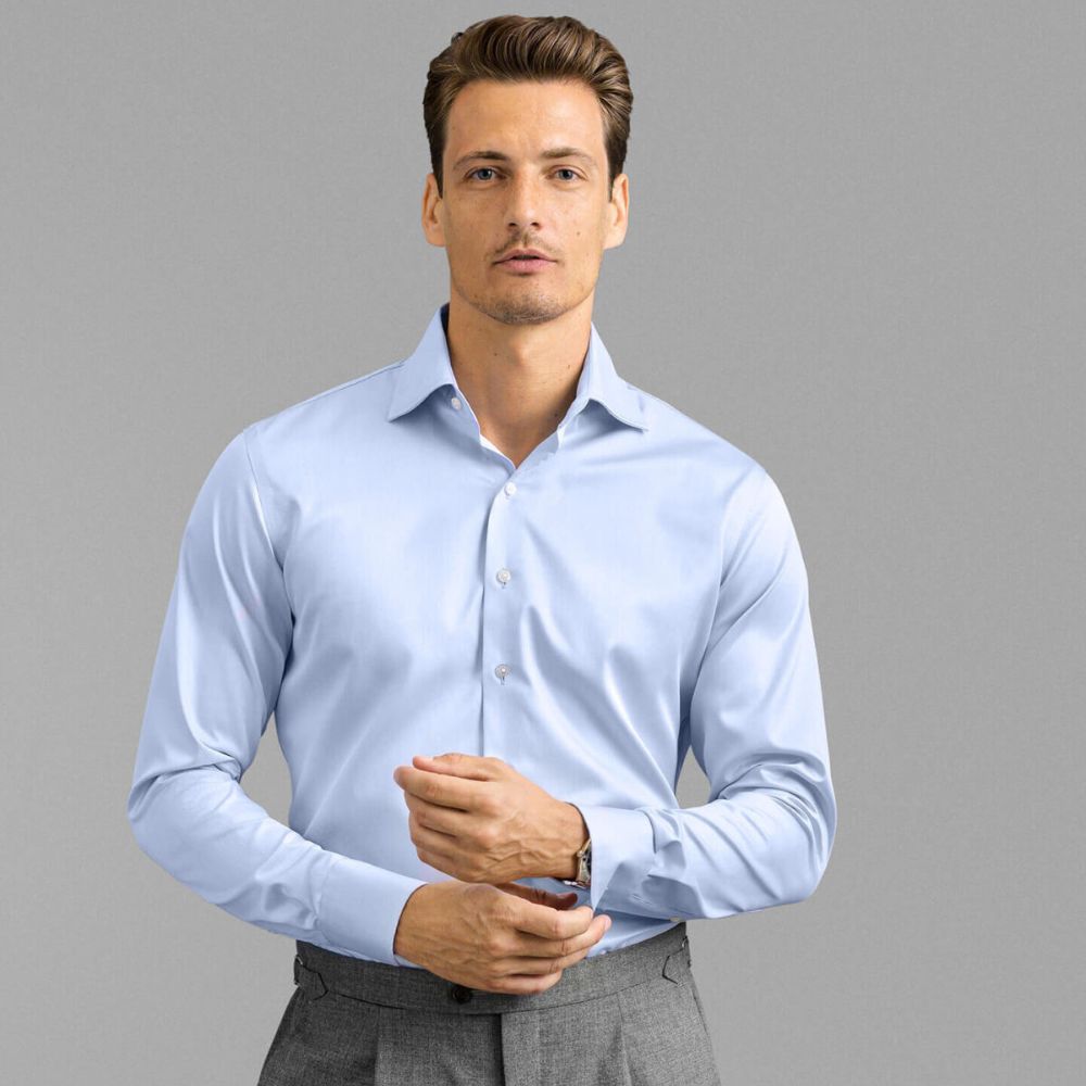 Esta sarga densamente tejida tiene un gran cuerpo, una sensación sustancial y aún así tiene un peso perfecto para usar todo el año. El recuento de hilos de dos capas 100s le da una gran durabilidad y lo hace agradable y suave en la piel. El tejido de sarga permite que cubra limpiamente el cuerpo y un fuerte acabado resistente a las arrugas lo mantiene fresco durante todo el día. El brillo sutil y la textura mínima hacen de esta una camisa increíble para usar con prendas y trajes a la medida. Una excelente alternativa a nuestra sarga resistente a las arrugas azul claro Hudson para hombres que buscan un poco más de rendimiento antiarrugas.