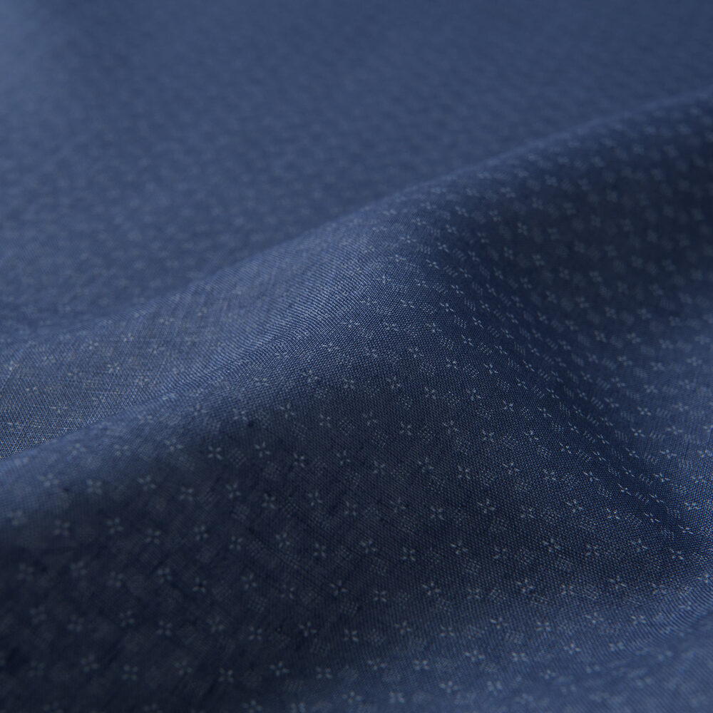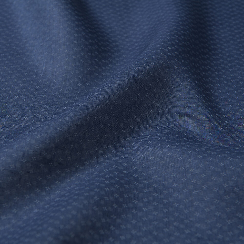 Este tejido liso de una sola capa 24s es un lino de verano clásico. El lino tiene un tejido aireado y abierto que respira increíblemente bien, y su sensación naturalmente fresca y su capacidad para mantenerte seco lo convierten en un elemento esencial del verano, si es que alguna vez lo hubo. Su textura hinchada única le da carácter y proporciona interés visual, ya sea sólido o estampado. Tenga en cuenta que la naturaleza propensa a las arrugas del lino es parte de su encanto; no se preocupe por plancharlo, simplemente deje que se vea desgastado y relajado. El fondo azul pizarra uniforme de este tejido se destaca por un delicado patrón de diminutas formas azul claro hechas de puntos. Le da a este lino informal un aspecto limpio que también es un poco divertido. Úselo debajo de una chaqueta deportiva ligera o desabrochado con chinos.