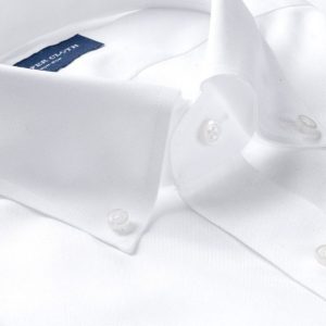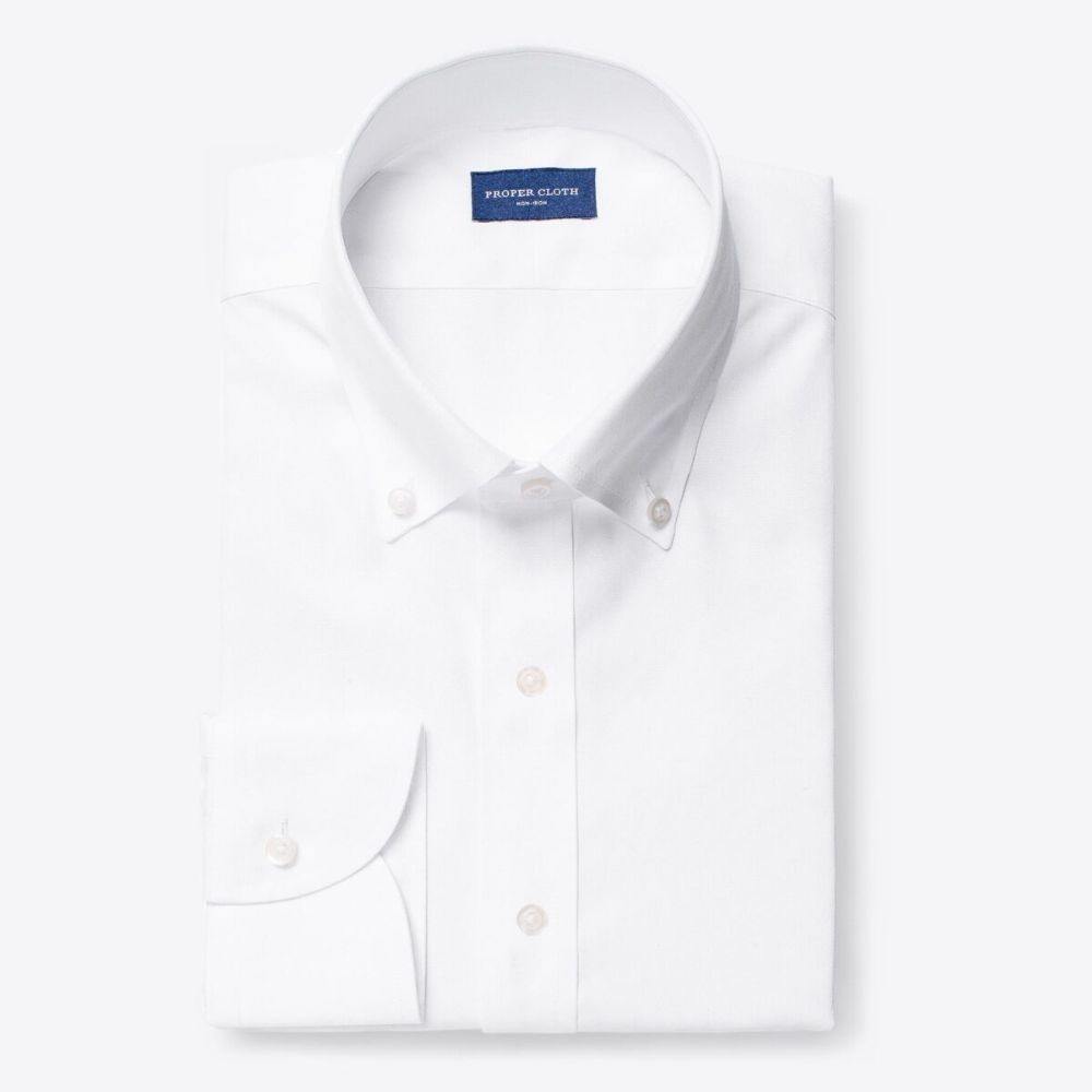 Nuestras telas elásticas que no requieren plancha están hechas de una mezcla premium de algodón Supima americano de dos capas 100s y un pequeño porcentaje de spandex de alto rendimiento. Tienen la cantidad justa de elasticidad para moverse contigo cómodamente durante el uso diario. Todas nuestras telas que no requieren plancha están terminadas con un innovador tratamiento "formaldehyde-free" que les permite permanecer sin arrugas todo el día mientras se usan cómodamente contra la piel. Esta sarga blanca óptica es un elemento básico de vestuario, perfecto para todo, desde entrevistas hasta bodas. Combínalo con un clásico traje azul marino o negro para negocios y ocasiones formales.