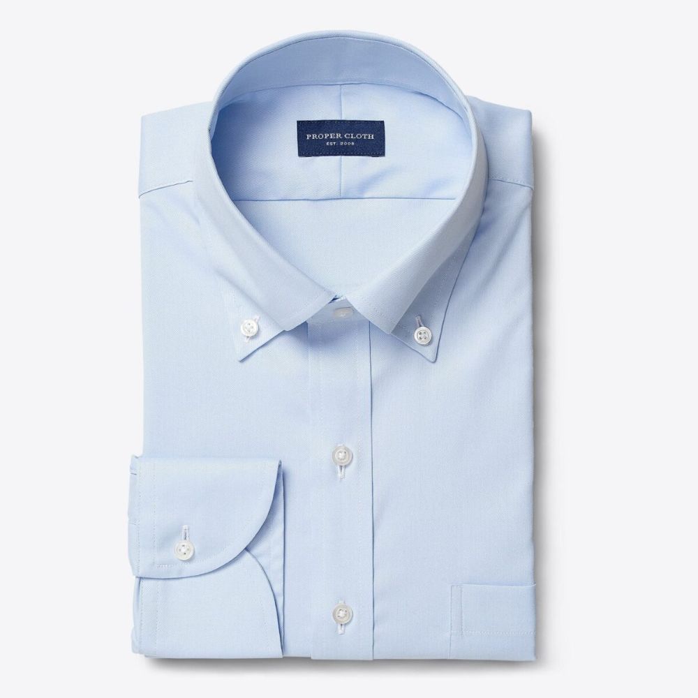 Nuestras telas elásticas que no requieren plancha están hechas de una mezcla premium de algodón Supima americano de dos capas 100s y un pequeño porcentaje de spandex de alto rendimiento. Tienen la cantidad justa de elasticidad para moverse contigo cómodamente durante el uso diario. Todas nuestras telas que no requieren plancha están terminadas con un innovador tratamiento "formaldehyde-free" que les permite permanecer sin arrugas todo el día mientras se usan cómodamente contra la piel. Este clásico sarga azul claro es un elemento básico del guardarropa, perfecto para todo, desde entrevistas hasta bodas. Combínalo con un clásico traje azul marino o un pantalón de vestir gris.