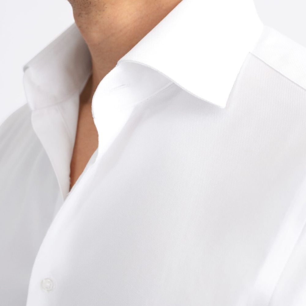 El royal oxford blanco es un estilo de camisa de vestir atemporal, y nuestro tejido premium Supima Cotton Non-Iron es la versión perfecta para un cuidado sin complicaciones. La textura royal oxford le da a esta camisa un brillo brillante que la convierte en un tono de blanco particularmente hermoso. Una construcción duradera de dos capas de los años 80 le da un buen peso medio que es cómodo en las cuatro estaciones: suficiente cuerpo para cubrirse bien pero seguir siendo transpirable. El algodón American Supima premium solo mejora la sensación y el rendimiento, agregando una gran suavidad y una mayor resistencia. Terminado con un innovador tratamiento "formaldehyde-free" para permanecer libre de arrugas durante todo el día, sin dejar de usarlo cómodamente contra la piel. También es muy fácil de cuidar. El Royal Oxford es un tejido más fino que una pesada tela Oxford, lo que significa que funciona con traje y corbata, pero también se ve muy bien con las mangas arremangadas después del trabajo. Ligeramente más elegante que una sarga, un "broadcloth" o un "pinpoint": nos encanta cómo se viste suave mientras se ve realmente lujoso.
