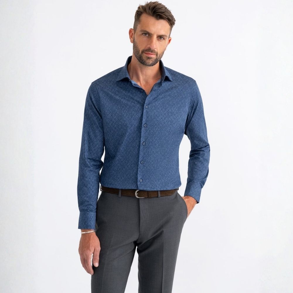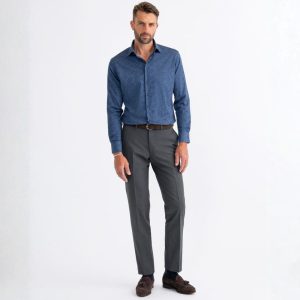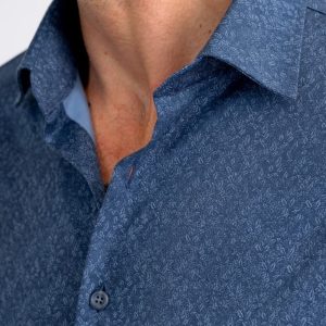 Tejido con una construcción de paño fino de una sola capa de los años 50, perfecto para estampados con gran detalle, este tejido es ligero y fresco sin resultar demasiado delicado, y cuenta con elastano para mayor comodidad y elasticidad. El estampado consiste en diminutas hojas de helecho en tonos azules, todas dispuestas sobre un fondo azul marino nítido. Los helechos tienen formas sencillas pero detalles, por lo que no se aprecia de inmediato el patrón hasta que se observa de cerca. Es un tejido encantador y llamativo, además de sorprendentemente versátil. Llévalo en lugar de una camisa lisa o de cuadros y combínalo de forma informal con pantalones chinos, o combínalo con un traje o pantalón de vestir para darle un toque elegante a un look elegante.