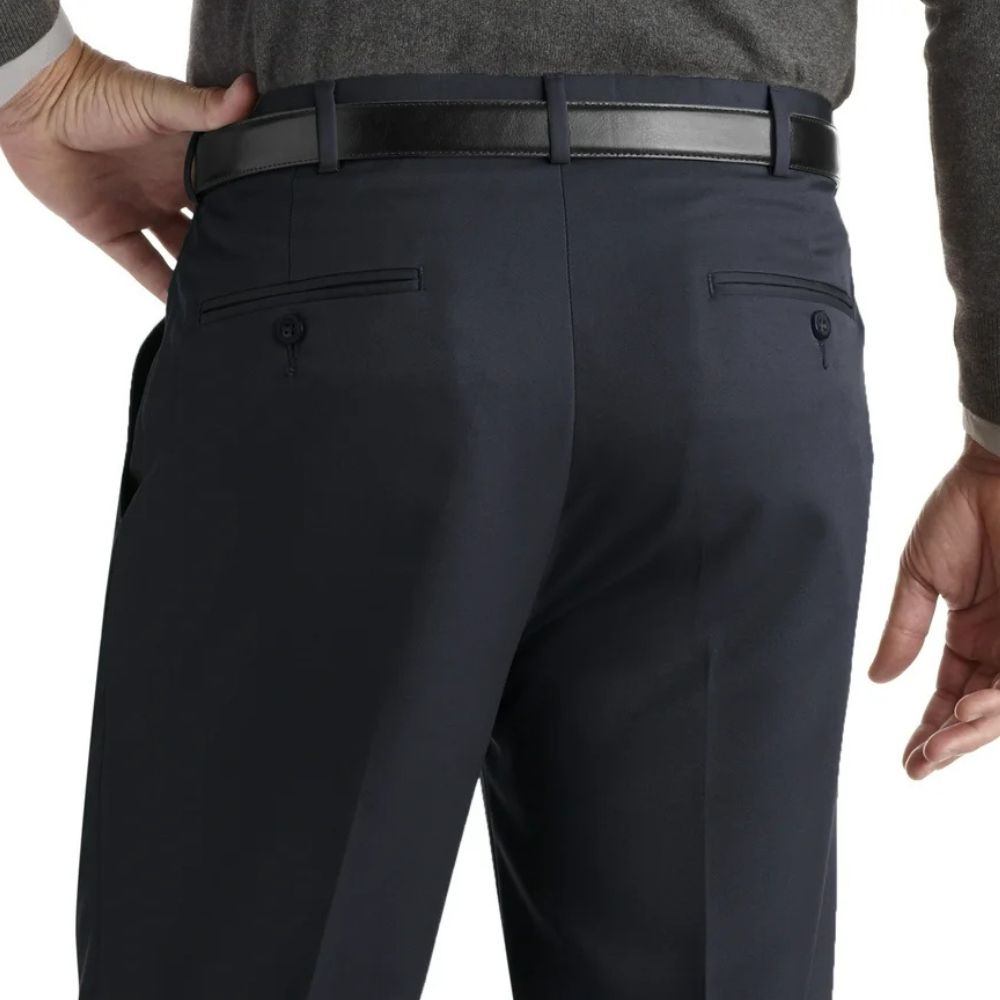 Estos pantalones de vestir de microfibra plisados George, no solo ofrecen un corte de pantalón de vestir clásico, sino que también tienen características de comodidad como una tela que absorbe la humedad y una cintura expandible. La tela utiliza el hilo de rendimiento Sorbtek de Unifi que está estructurado para eliminar la humedad y mantener al usuario fresco y seco. Estos pantalones te mantendrán con un aspecto nítido desde la oficina hasta el campo de golf y a donde sea que te dirijas.