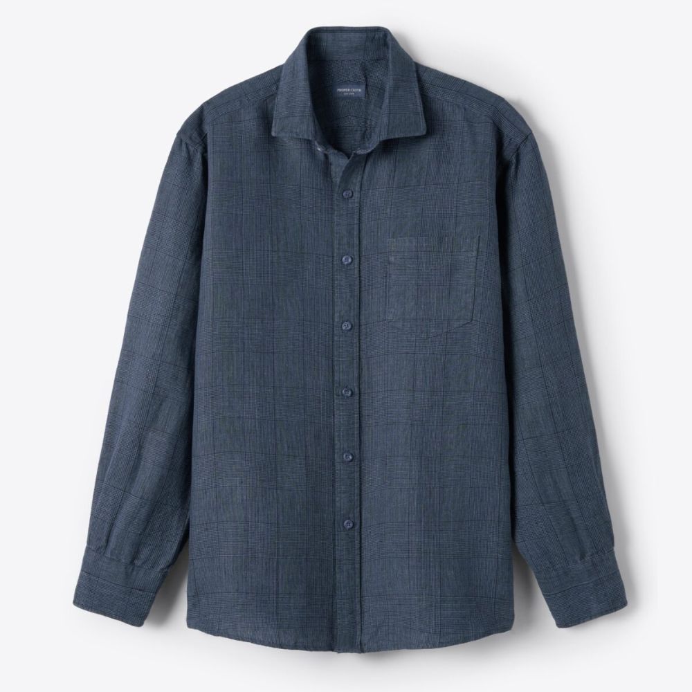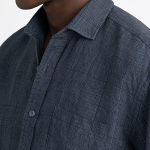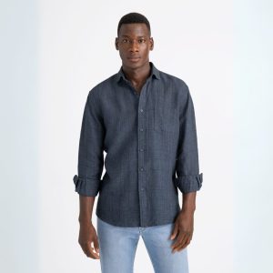 Esta tela de una sola capa de los años 20 ofrece la transpirabilidad y la sensación de sequedad características del lino 100%, además de una caída suave, lo que crea una calidad excepcional para climas cálidos. El clásico estampado de cuadros se adapta a la irregularidad de la textura del lino, con los tonos azul marino apagados que se difuminan entre sí. Es una tela con un toque rústico distintivo, realzado por la sofisticación de los cuadros y la suave variación de colores. Combínala con pantalones o chinos de lino azul marino para un look relajado pero sofisticado.