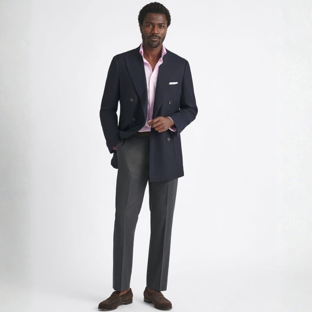 Esta sarga de tejido denso tiene un gran cuerpo, una sensación sustancial y, aun así, tiene un peso perfecto para usar durante todo el año. El recuento de hilos de dos capas de 100 le otorga una gran durabilidad y la hace agradable y suave al tacto. El tejido de sarga le permite adaptarse perfectamente al cuerpo y un acabado resistente a las arrugas le da un aspecto fresco durante todo el día. El brillo sutil y la textura mínima hacen de este rosa una excelente opción para los negocios. Es un color alegre, uno que querrás usar con un traje azul marino perfectamente ajustado en los días en que necesites un toque de energía.