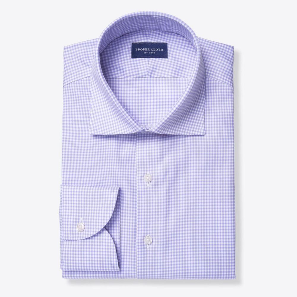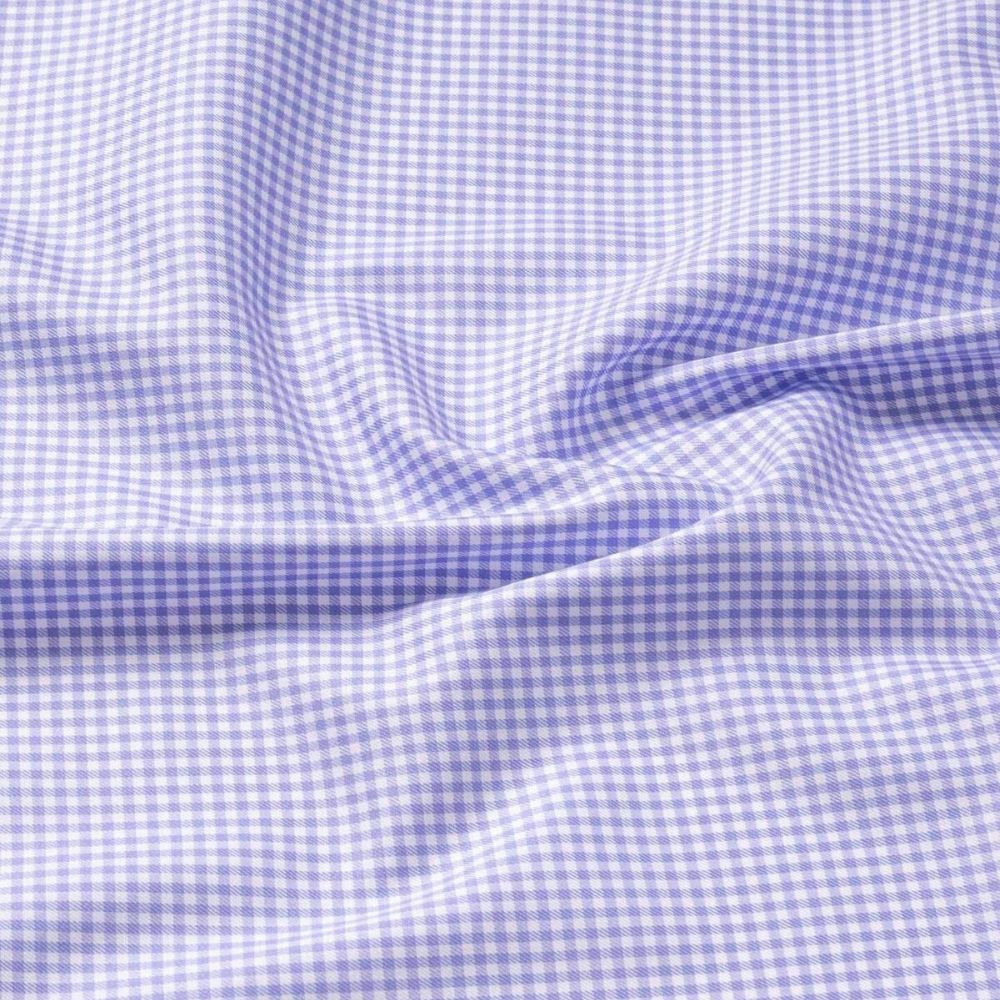 Esta hermosa combinación de algodón de dos capas de 100 % y elastano de alto rendimiento es suave y muy cómoda. El alto contenido de algodón significa que se siente exactamente como el algodón normal, incluso con el elastano; solo tiene un poco más de flexibilidad cuando la necesitas. Todas nuestras telas que no requieren planchado están terminadas con un innovador tratamiento con bajo contenido de formaldehído que les permite permanecer sin arrugas durante todo el día y, al mismo tiempo, son cómodas de usar sobre la piel. Esta sarga presenta un patrón clásico de cuadros vichy pequeños en un tono lavanda que la convierte en una opción especialmente buena para looks informales de negocios. Pruébala con un traje (sin corbata) y mocasines para algo más atrevido, o con pantalones chinos para el fin de semana.