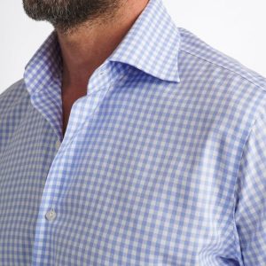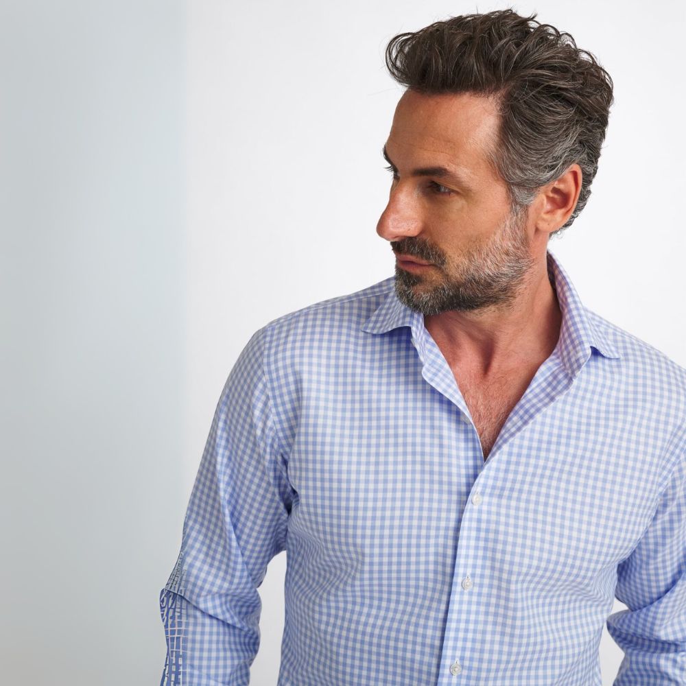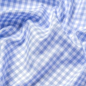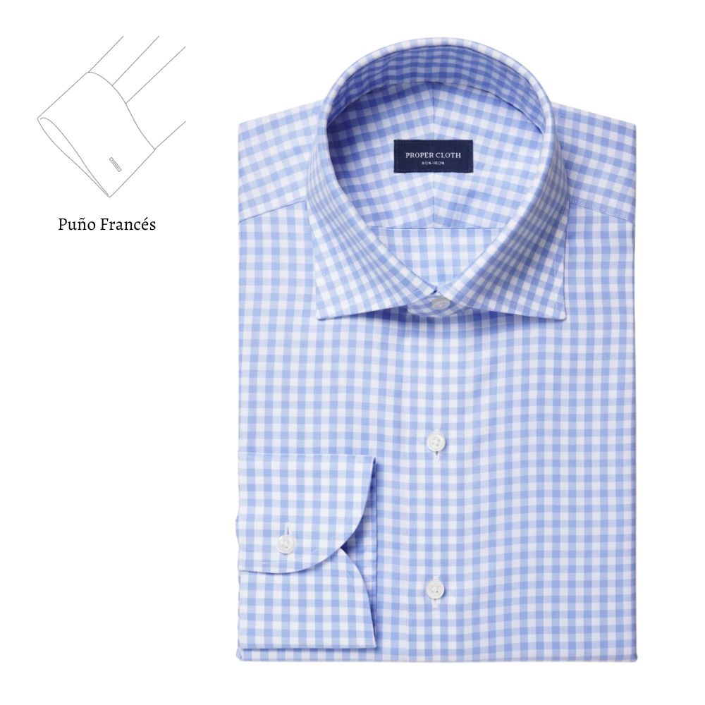 Este algodón de dos capas de 100 hilos es una tela suave, lisa y resistente para usar durante todo el año. Nuestras telas que no requieren planchado están terminadas con un innovador tratamiento con bajo contenido de formaldehído que les permite permanecer sin arrugas durante todo el día y, al mismo tiempo, se sienten cómodas al tacto. Además, esta sarga clásica presenta un cuadro vichy de tamaño mediano en un azul claro fresco que se siente un poco más elegante que el azul marino que quizás ya estés usando, una excelente opción para looks informales y de negocios sencillos. Pruébala con un traje azul marino (sin corbata) o con pantalones chinos el fin de semana.