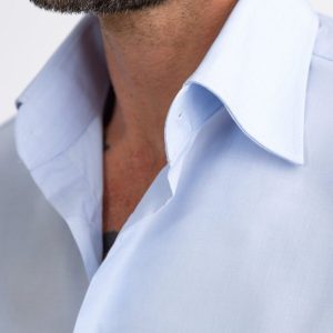 Un hermoso extremo azul claro hecho de algodón egipcio sedoso.