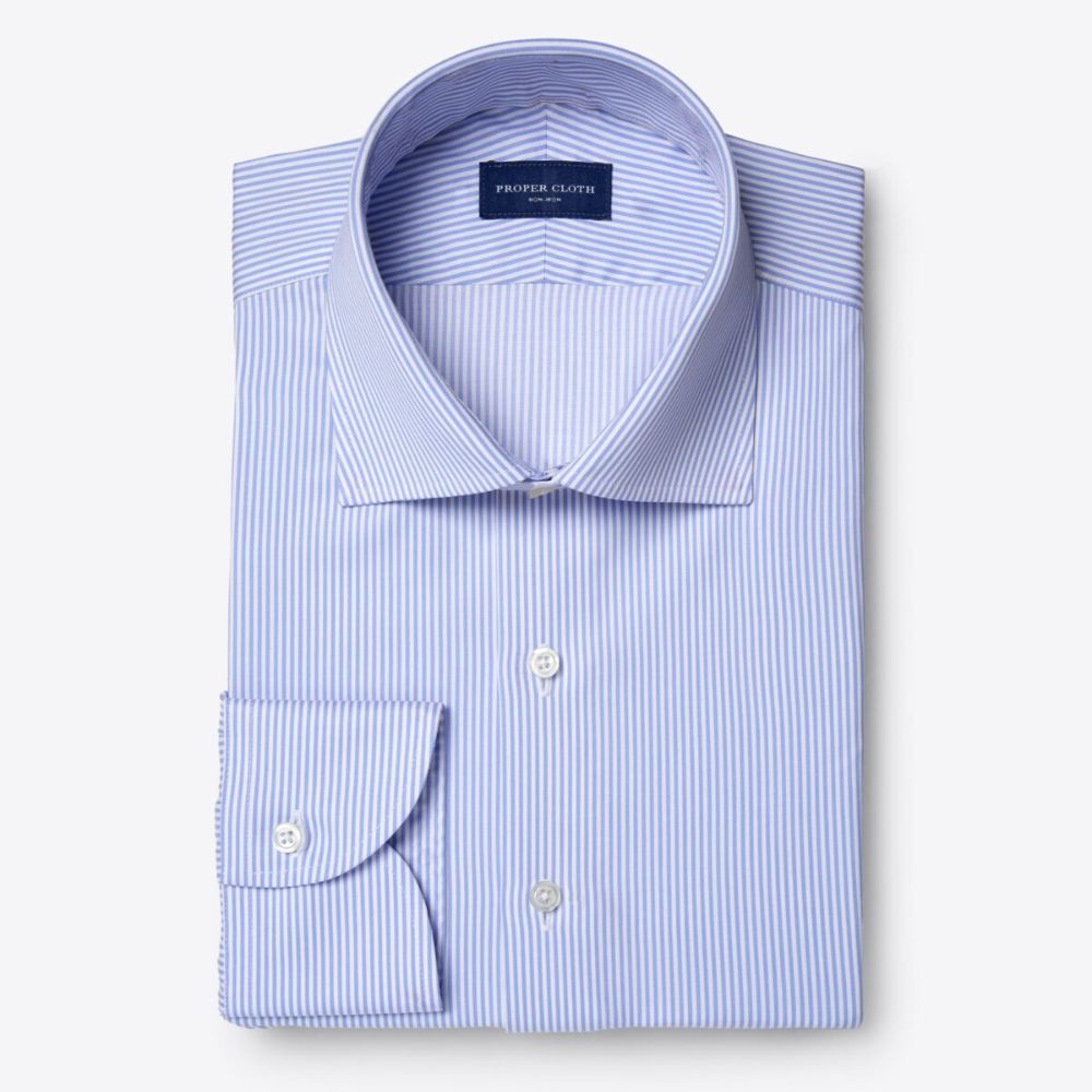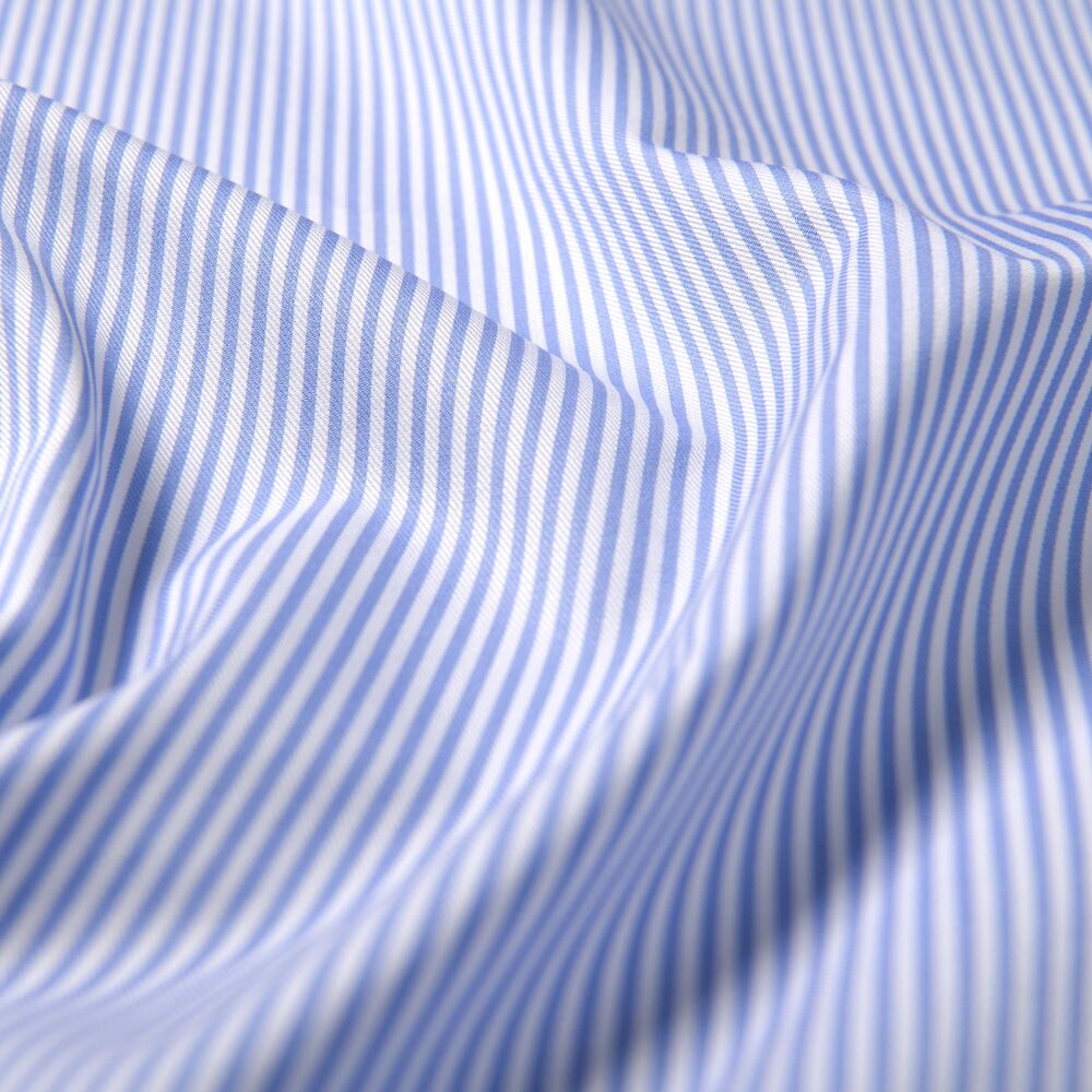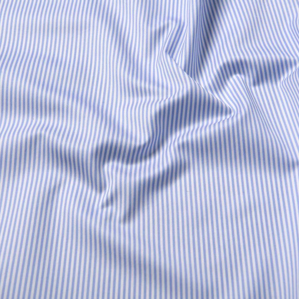 La primera camisa sin plancha se vendió hace 60 años y desde entonces ha sido un pilar en el guardarropa del trabajador. Trabajamos con la fábrica más respetada del mundo, Thomas Mason, para llevar la camisa sin plancha a un nivel completamente nuevo de calidad, tejida con algodón Supima estadounidense y Giza egipcio de primera calidad y terminada en las instalaciones de última generación de Thomas Mason. Esta sarga de 2 capas 100s está hecha de una combinación del mejor algodón Supima americano y algodón egipcio de primera calidad que le da una mano particularmente suave y un hermoso tono de color. Nos encanta su peso medio, lo que significa que se puede llevar cómodamente todo el año con una gran durabilidad gracias al hilo de doble torsión. Está terminado con un innovador tratamiento casi libre de formaldehído para mantenerse libre de arrugas durante todo el día mientras se usa cómodamente contra la piel. También es muy fácil de cuidar: úselo directamente de la lavadora y la secadora, o aplíquelo rápidamente para obtener una apariencia increíblemente limpia y profesional. Esta raya de bengala fina azul cielo tiene una audacia discreta que llama la atención, y el tono azul combinará con casi todo en tu armario.