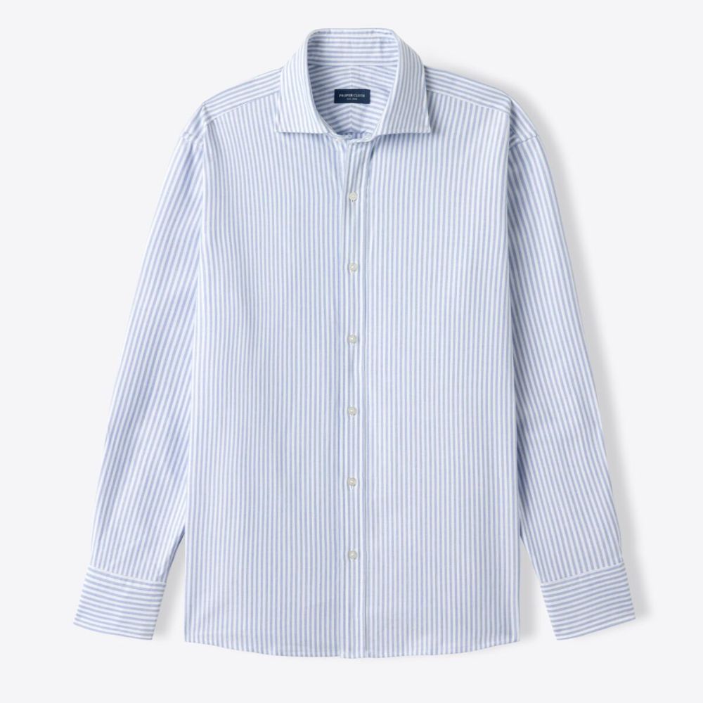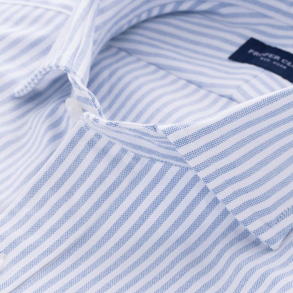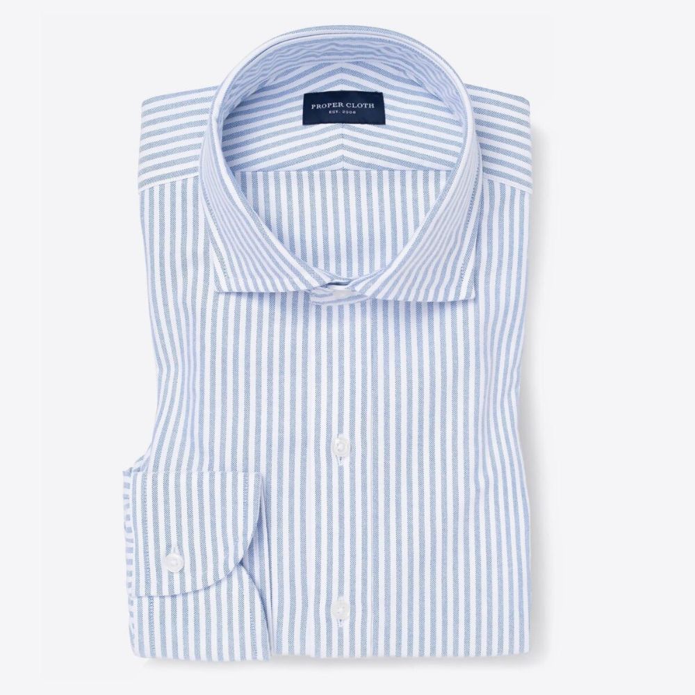 Nuestros pesados oxford tienen la cantidad justa de peso: están tejidos con algodón Pima con una construcción de 2 capas de los años 40 para una tela que se siente sólida, pero no demasiado gruesa. También son muy resistentes, lo que significa que durarán años y solo mejorarán cuanto más se laven y usen. Puedes vestir un oxford debajo de una chaqueta deportiva o vestirlo con tus jeans favoritos. Es una de las pocas telas que se puede usar tan fácilmente con una corbata como arrugada y desabrochada. Este oxford grueso con rayas universitarias azules es atemporal y fácil de usar.