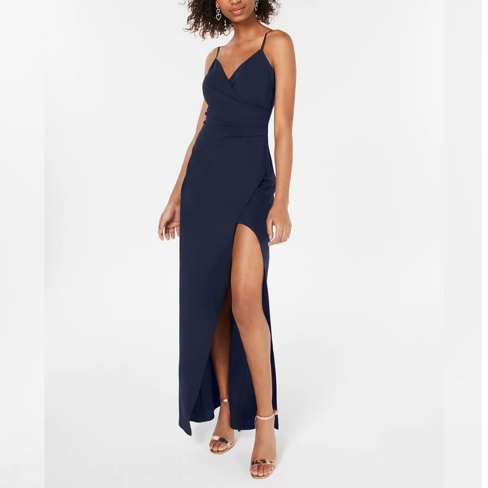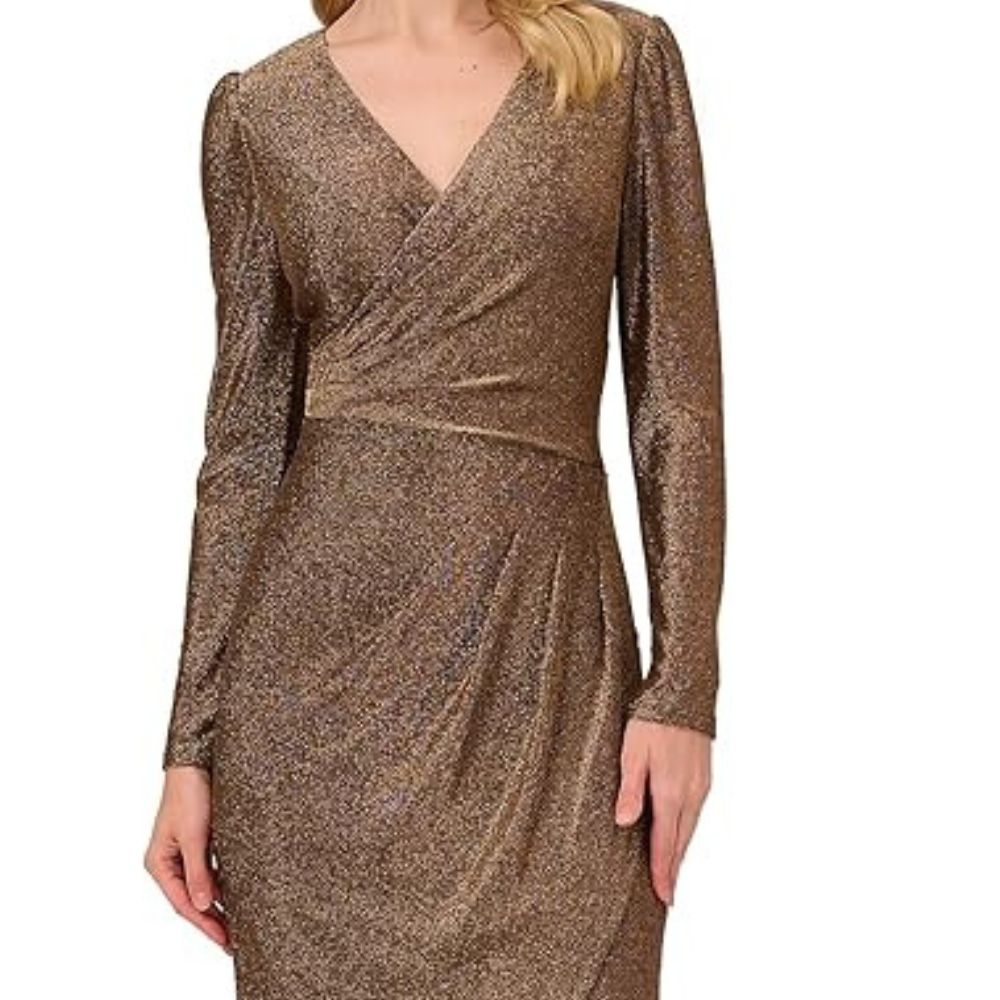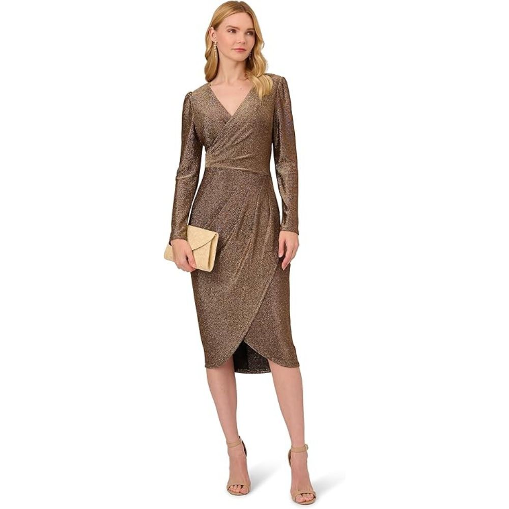 El brillo es divino en este vestido cruzado con escote en V de Adrianna Papell, una elección elegante para una fiesta.