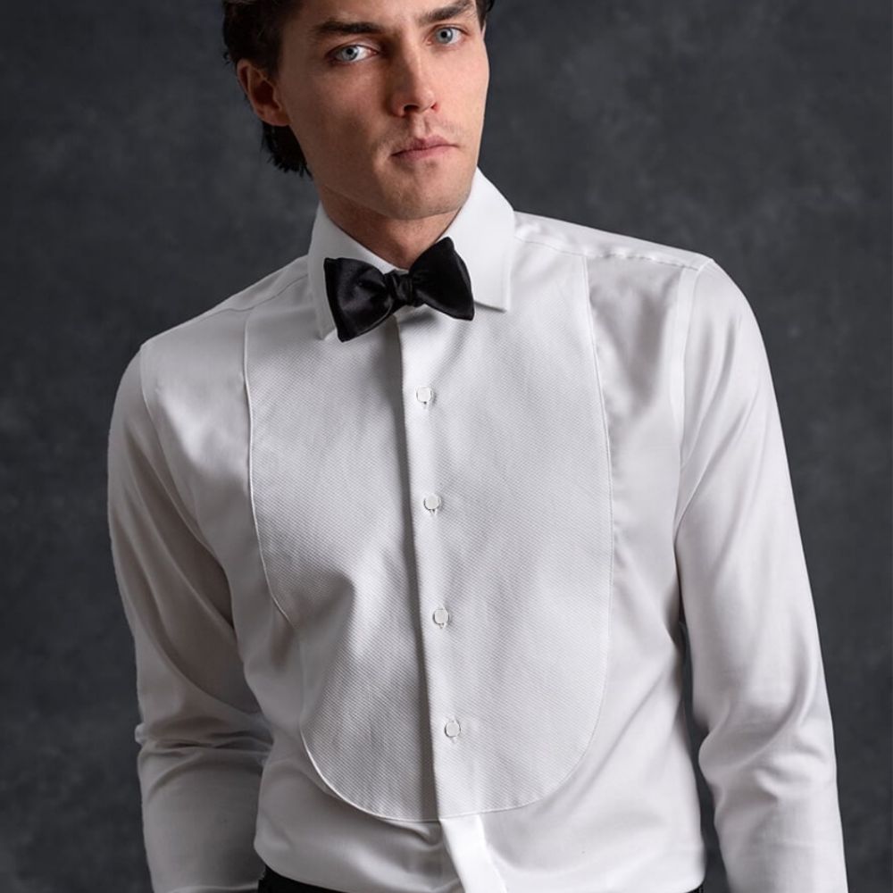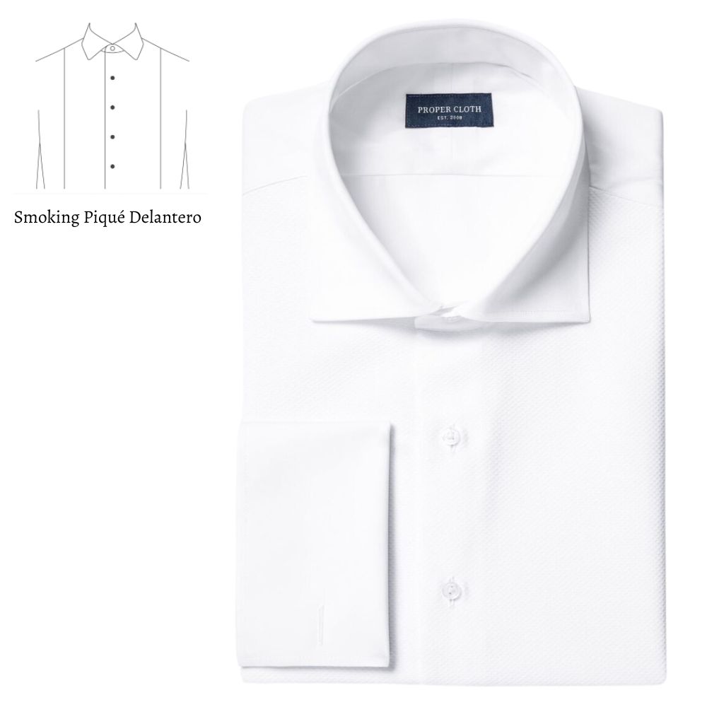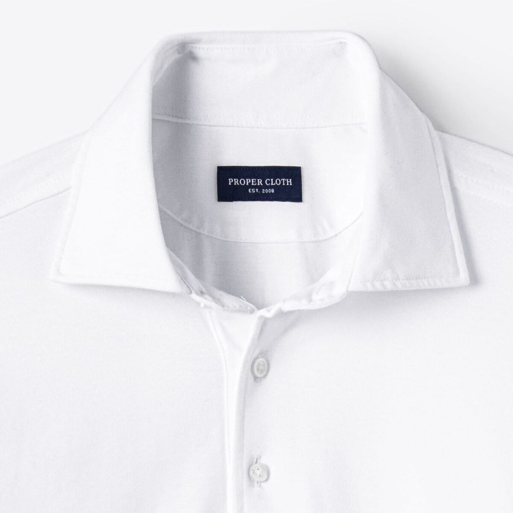 Una camisa de vestir blanca de caballo de batalla con una textura versátil.